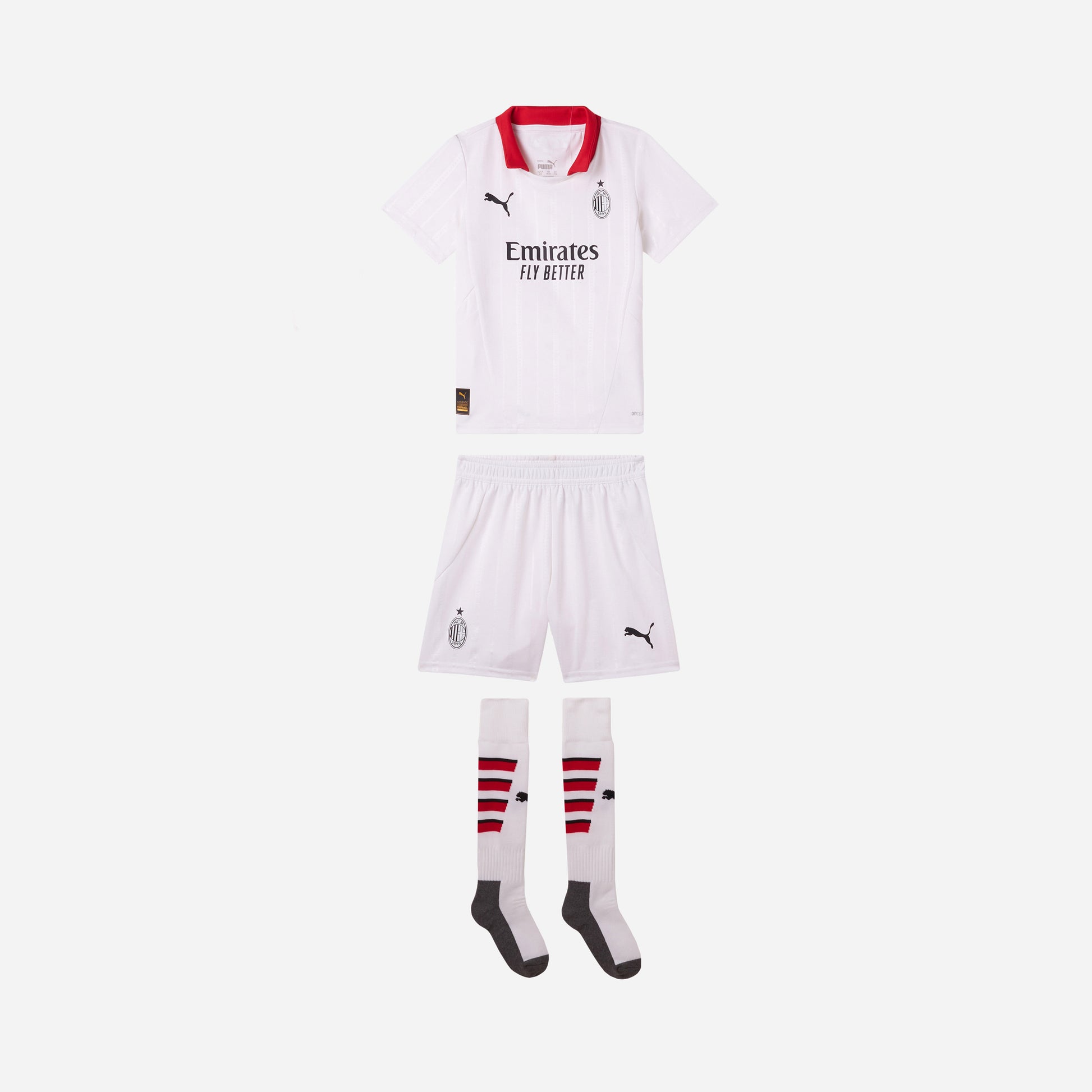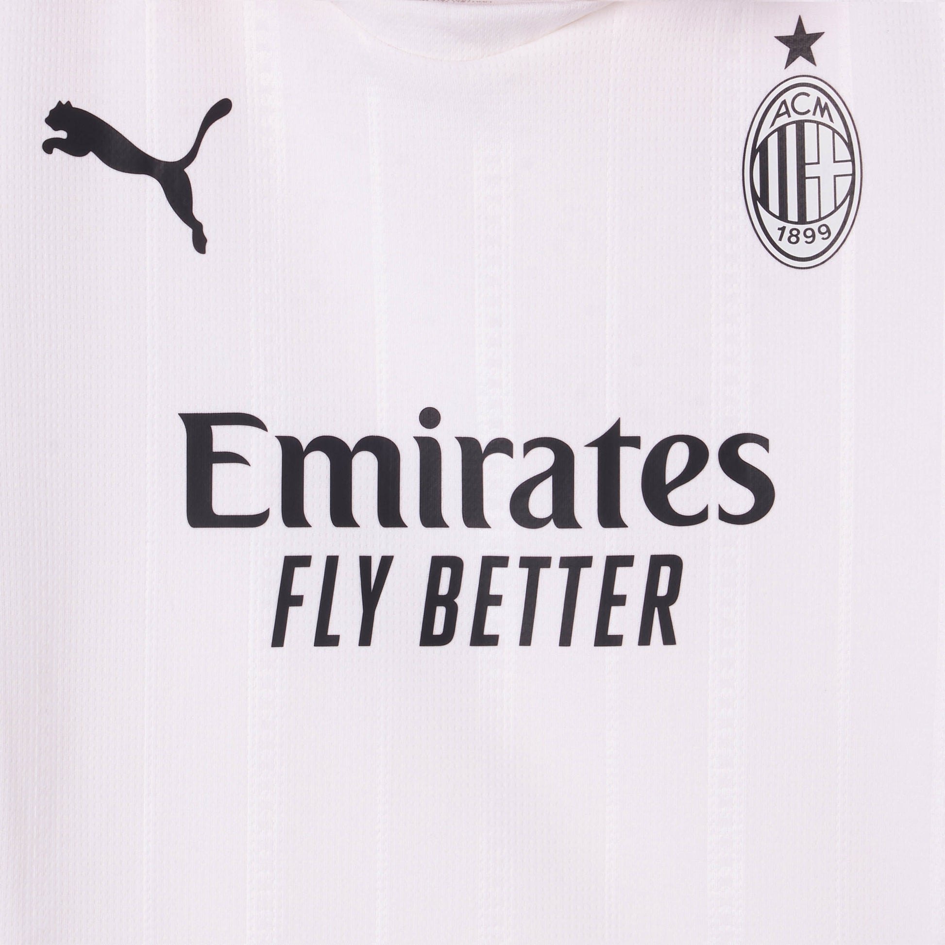 . Jersey with the official AC Milan logo printed on the left chest, the Principal Partner Emirates™ logo printed on the front, and the Puma logo printed on the right chest
