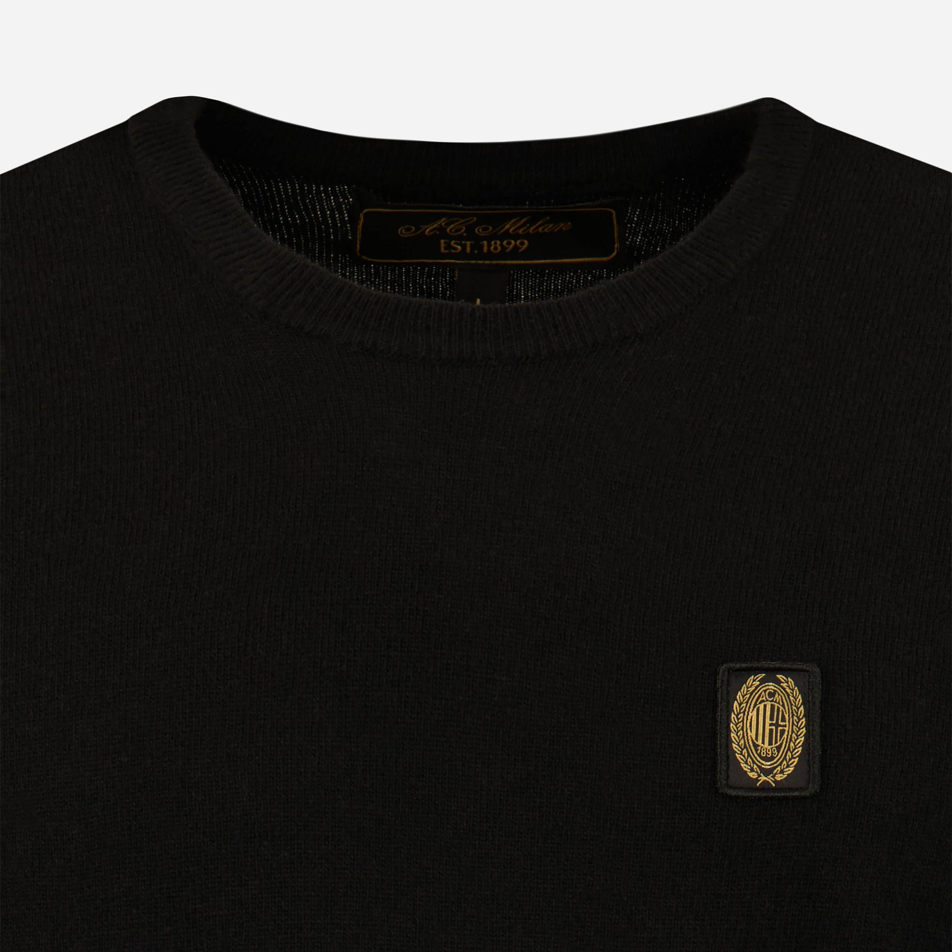 Explore the Gold Essential collection: an AC Milan cachemire blend choker sweater with embroidery.