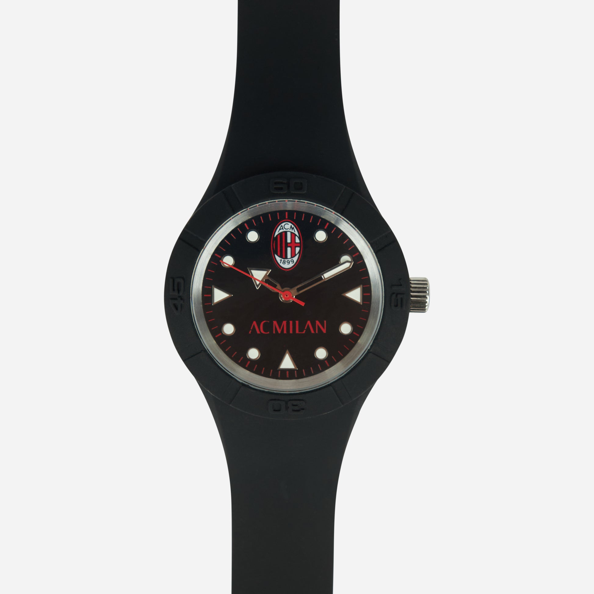 - Black dial with 'AC Milan' inscription in red
