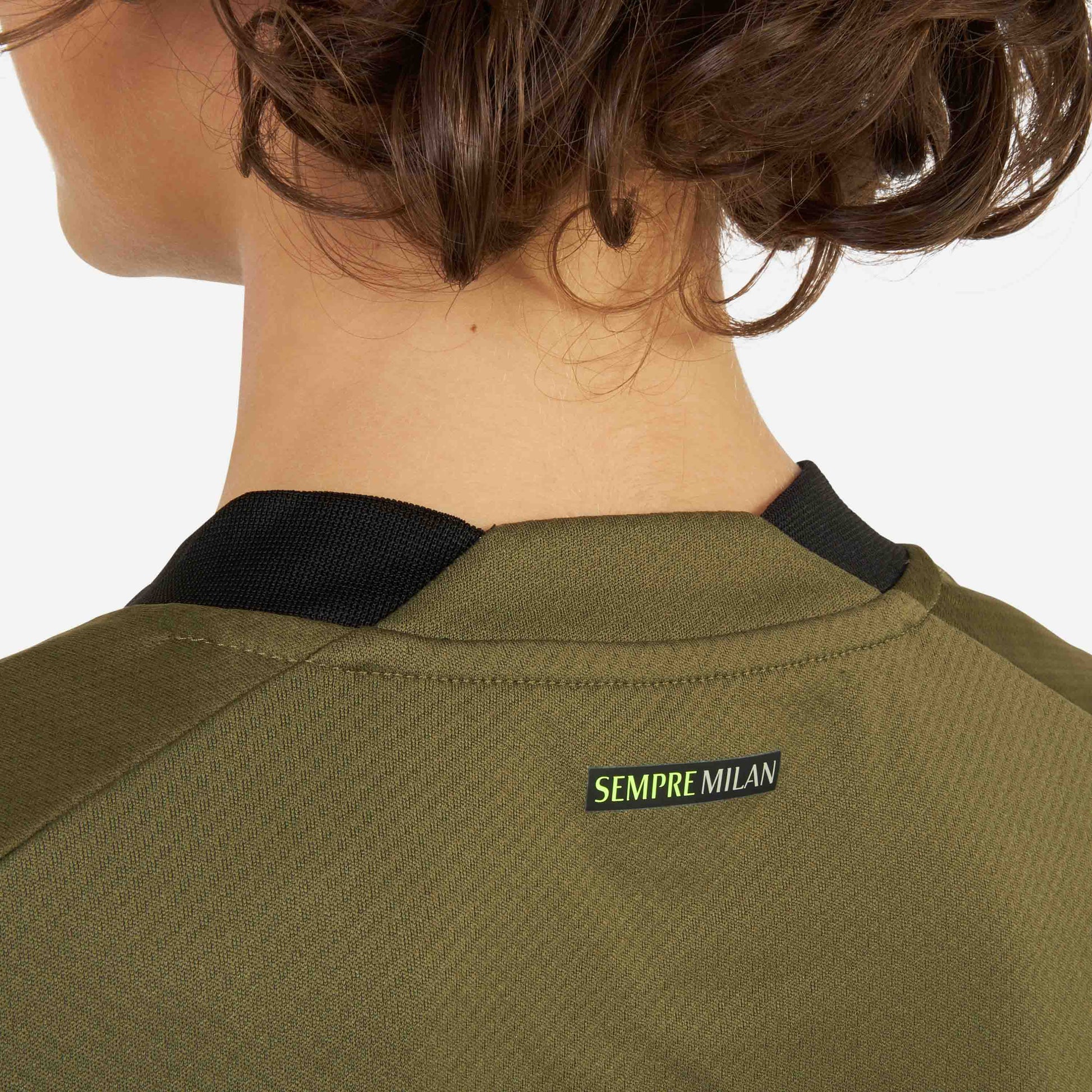 . “Sempre Milan” printed in small font under the collar on the backside