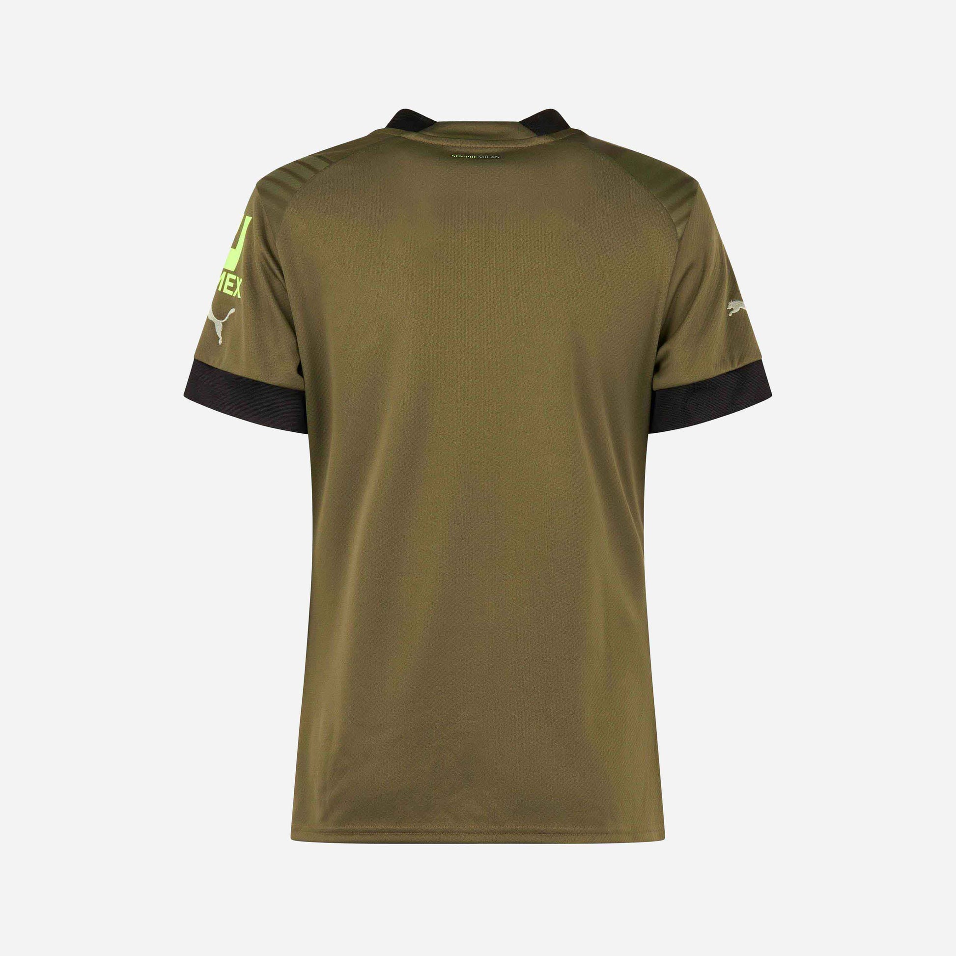 . “Sempre Milan” printed in small font under the collar on the backside