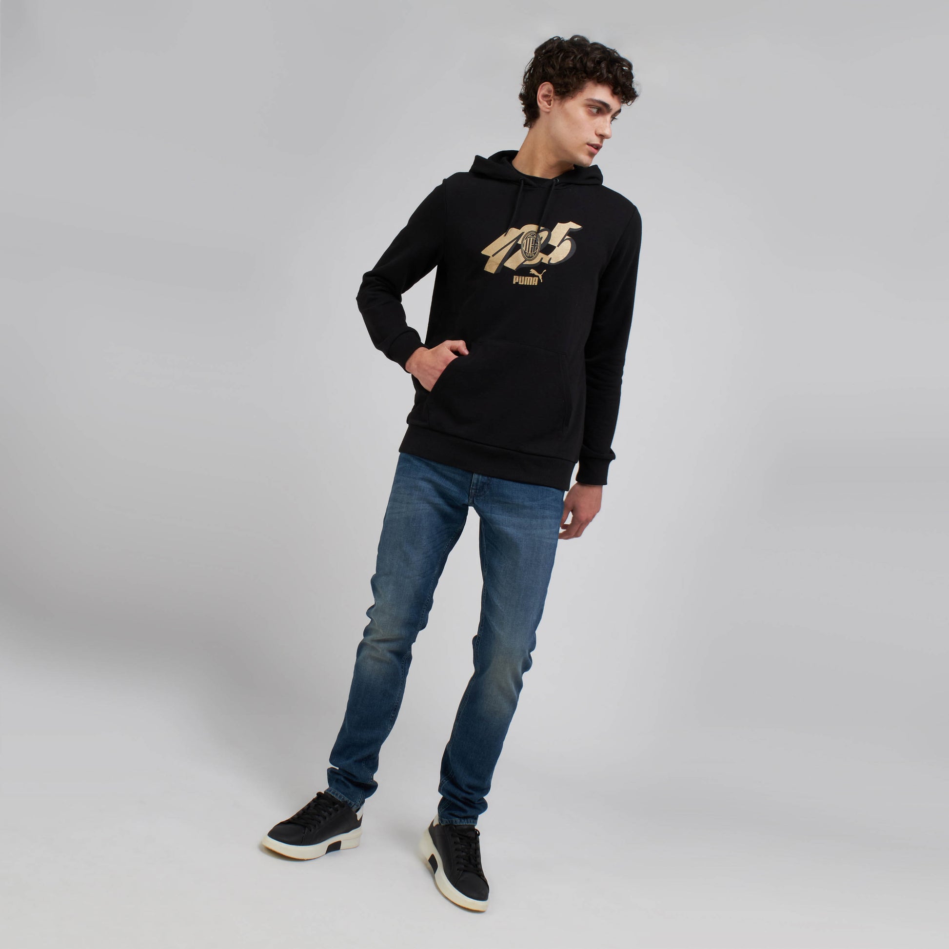 Questo drop è nato in occasione del 125° anniversario del club: Felpa nera con logo e dettagli in oro