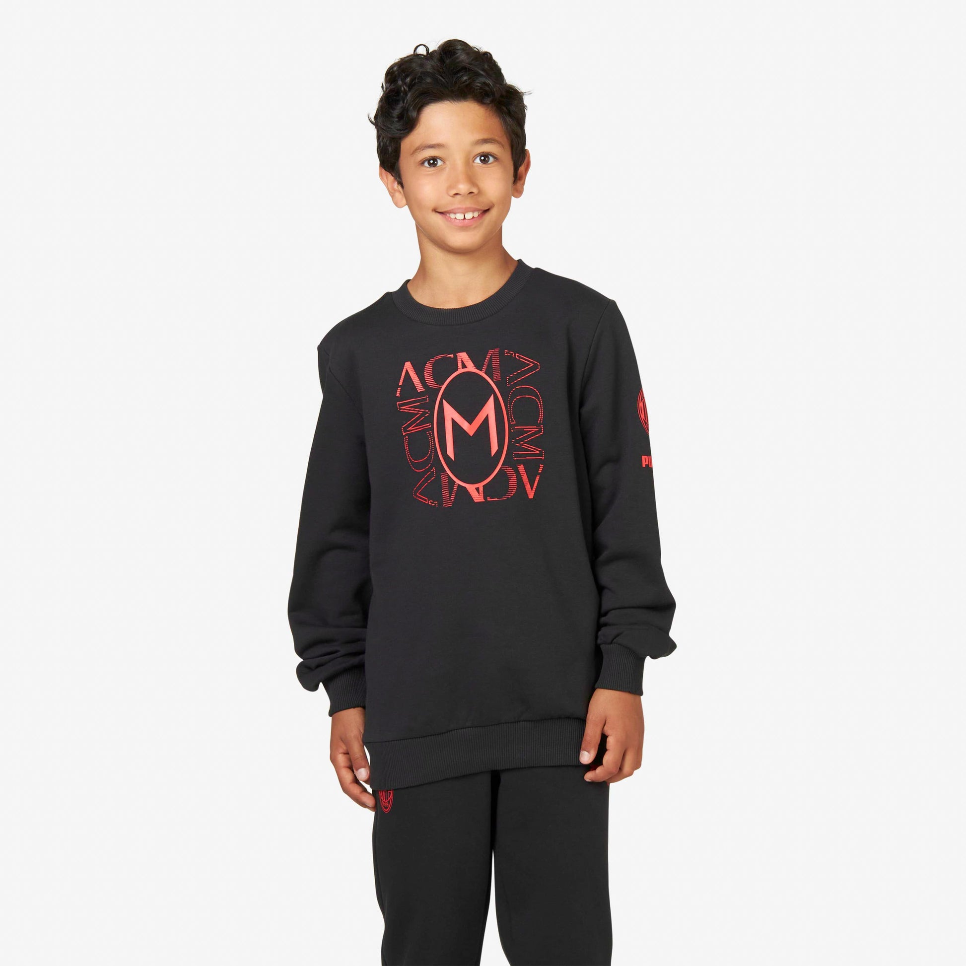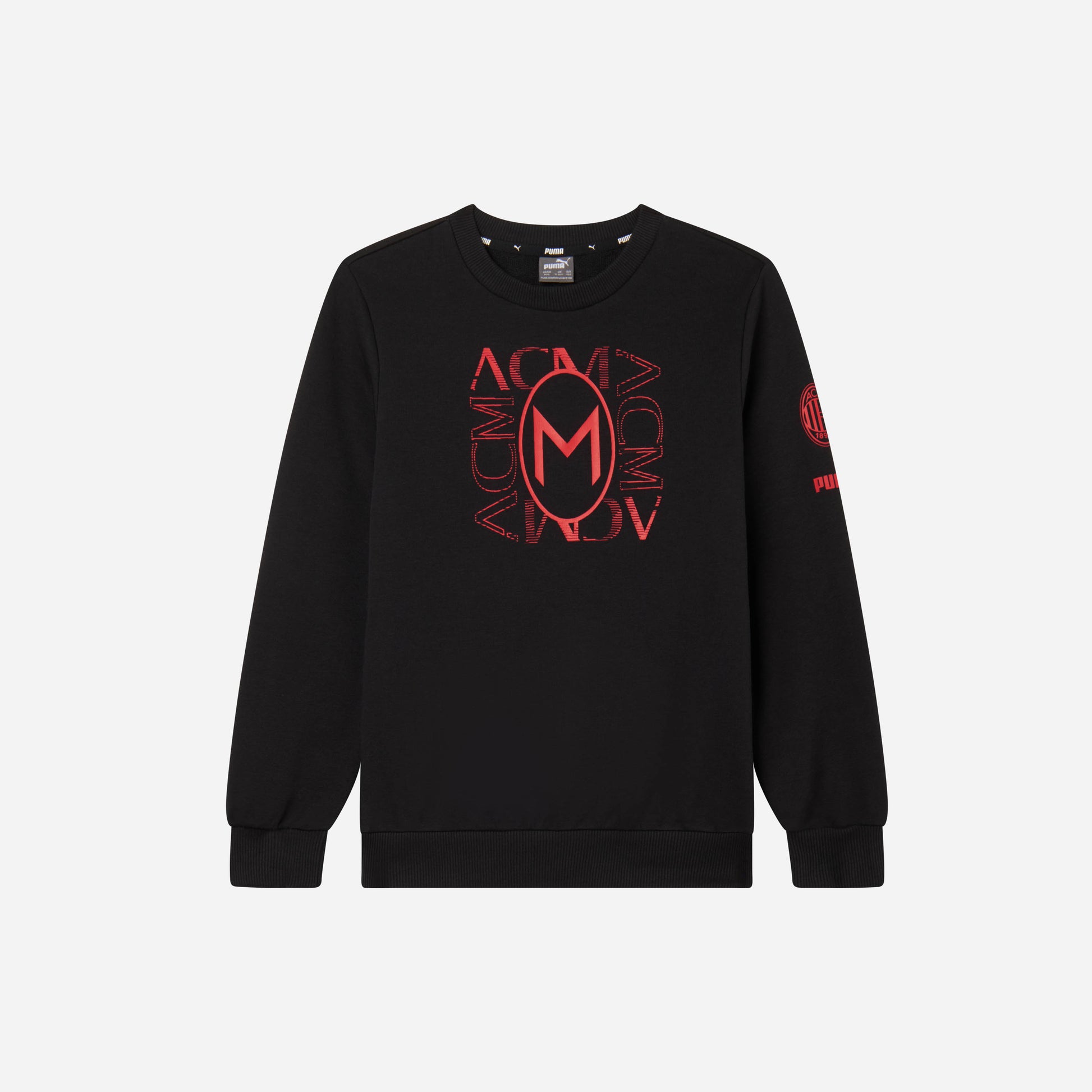 - Felpa con grafica con logo ufficiale AC Milan e logo Puma stampata sulla manica sinistra a contrasto
