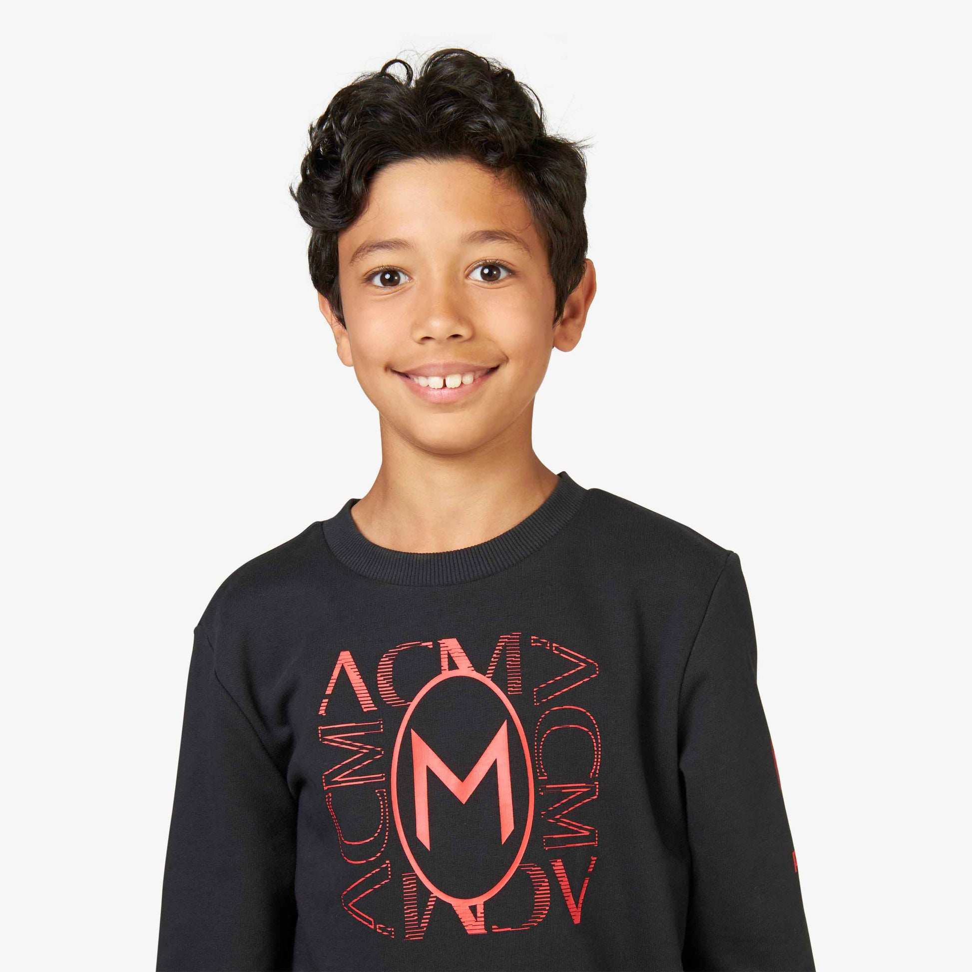 Felpa AC Milan da bambino con stampa frontale della linea Football Core.