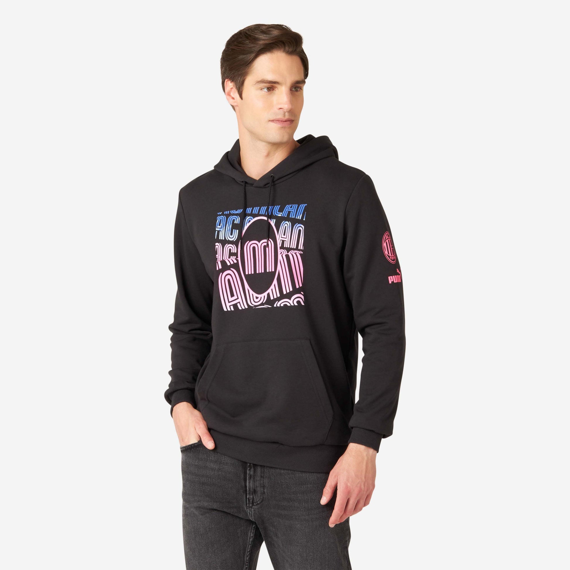 FELPA MILAN FOOTBALL CORE CON CAPPUCCIO E STAMPA