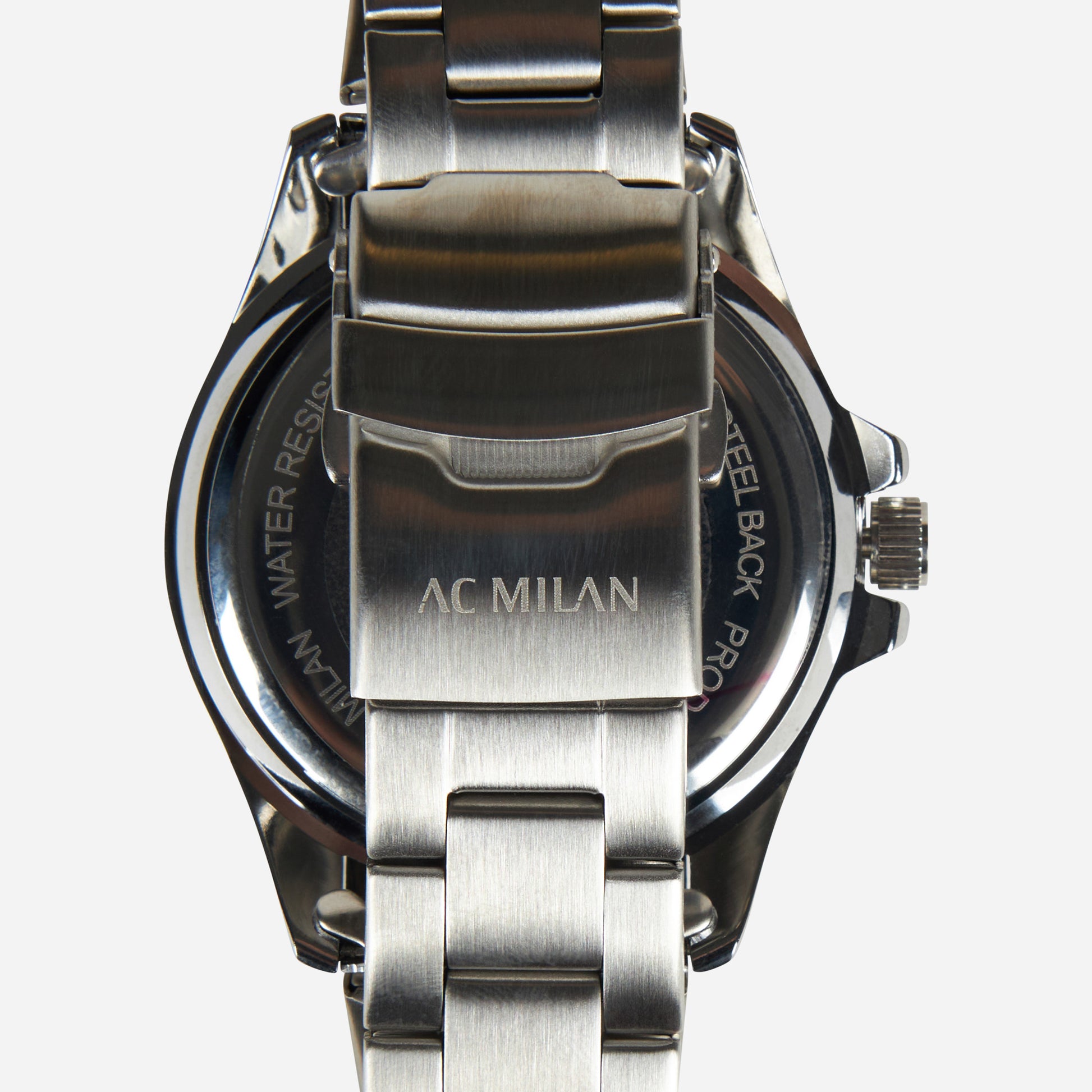 - Quadrante nero con scritta 'AC Milan' in bianco e logo ufficiale AC Milan