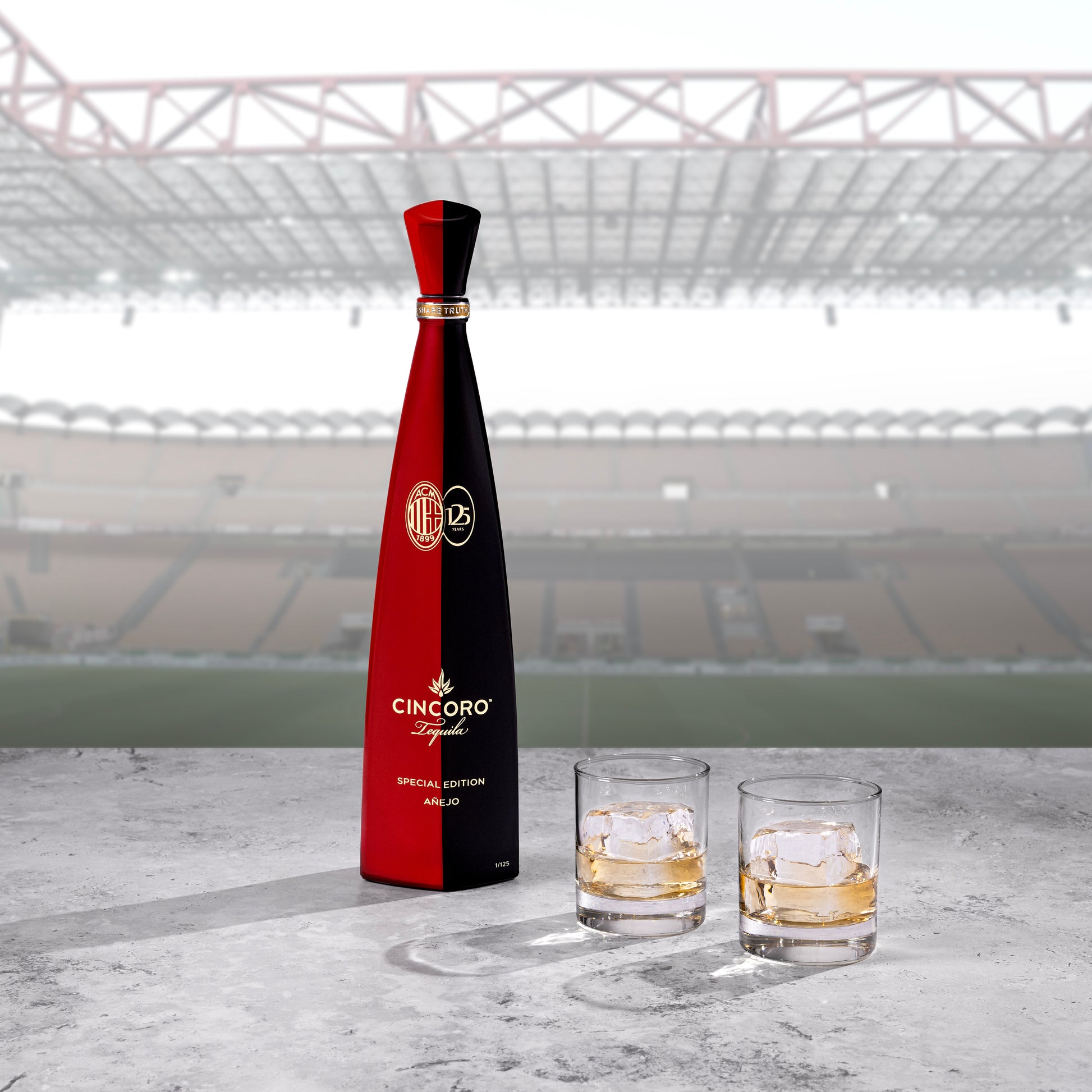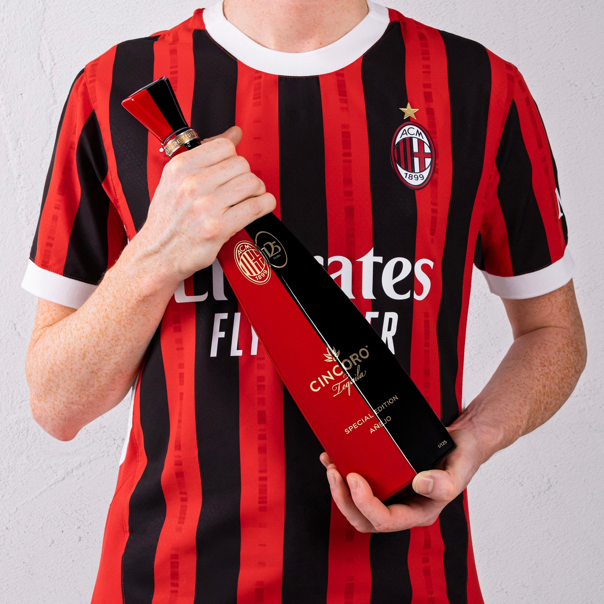 Realizzata in una tiratura ultra-esclusiva di sole 125 bottiglie, questa edizione limitata presenta un design accattivante nei colori nero e rosso, che richiamano le iconiche divise dell'AC Milan. È inoltre decorata con loghi in oro impresso sia di AC Milan che di Cincoro Tequila. L'edizione esclusiva presenterà una selezione limitata di Añejo Tequila premiata di Cincoro, invecchiata per oltre 20 mesi. Ogni bottiglia è numerata individualmente, aumentando il suo fascino come oggetto da collezione ambito.