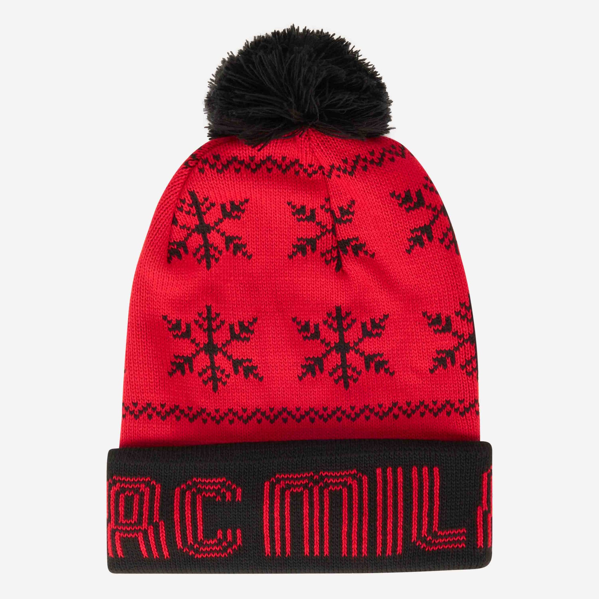 | Berretto AC Milan in maglia con pompon, fantasia natalizia con fiocchi di neve e scritta AC Milan. DETTAGLI . Base rossa con fantasia natalizia in nero a contrasto . Bordo risvoltato nero a contrasto con scritta AC Milan in rosso sulla parte frontale . Pompon nero a contrasto MATERIALI . Materiale esterno: 100% acrilico . Seguire sempre le istruzioni per la cura del prodotto riportate sull'etichetta |