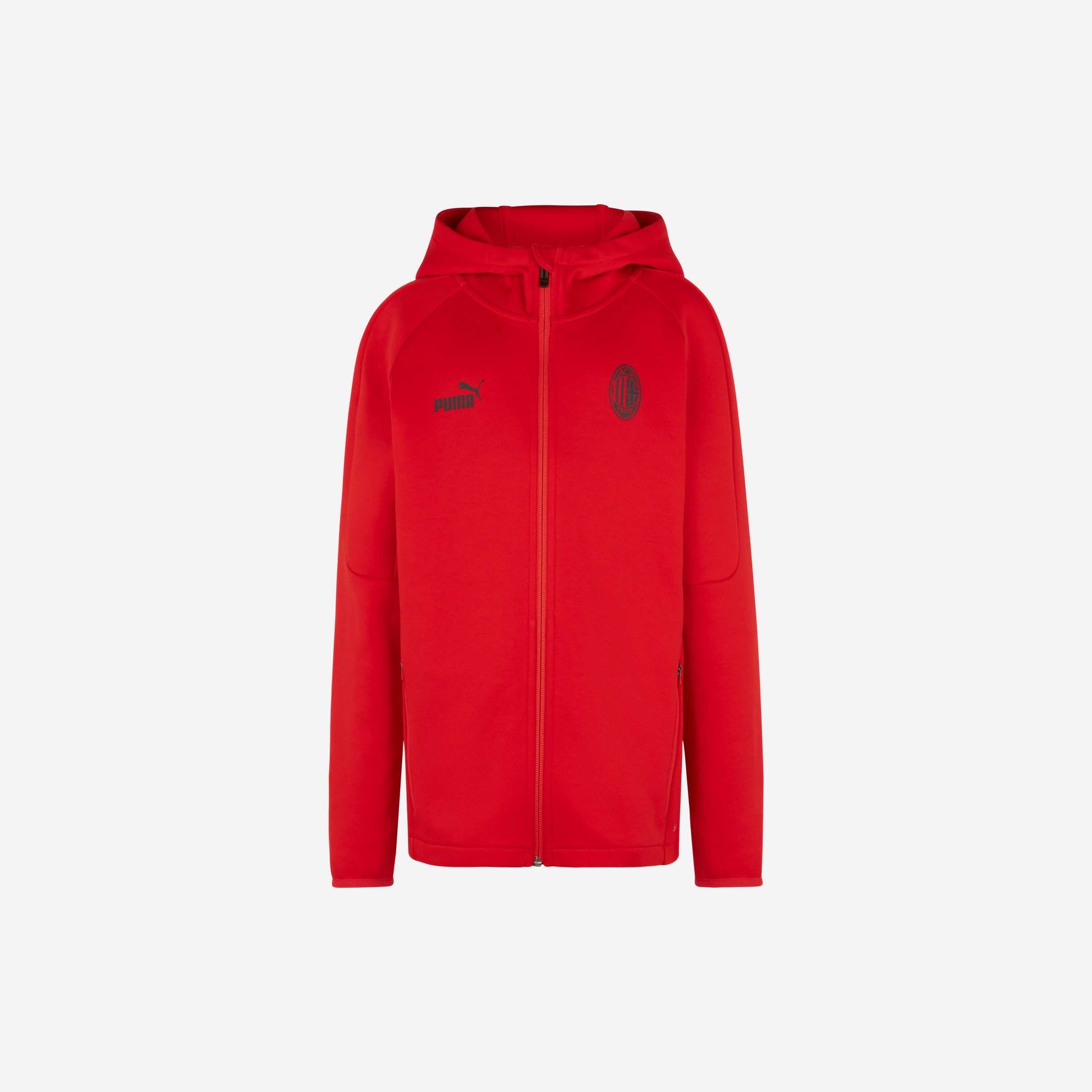 Felpa AC Milan da bambino della collezione Casuals 2022/23 con cappuccio, apertura con zip e tasche frontali.