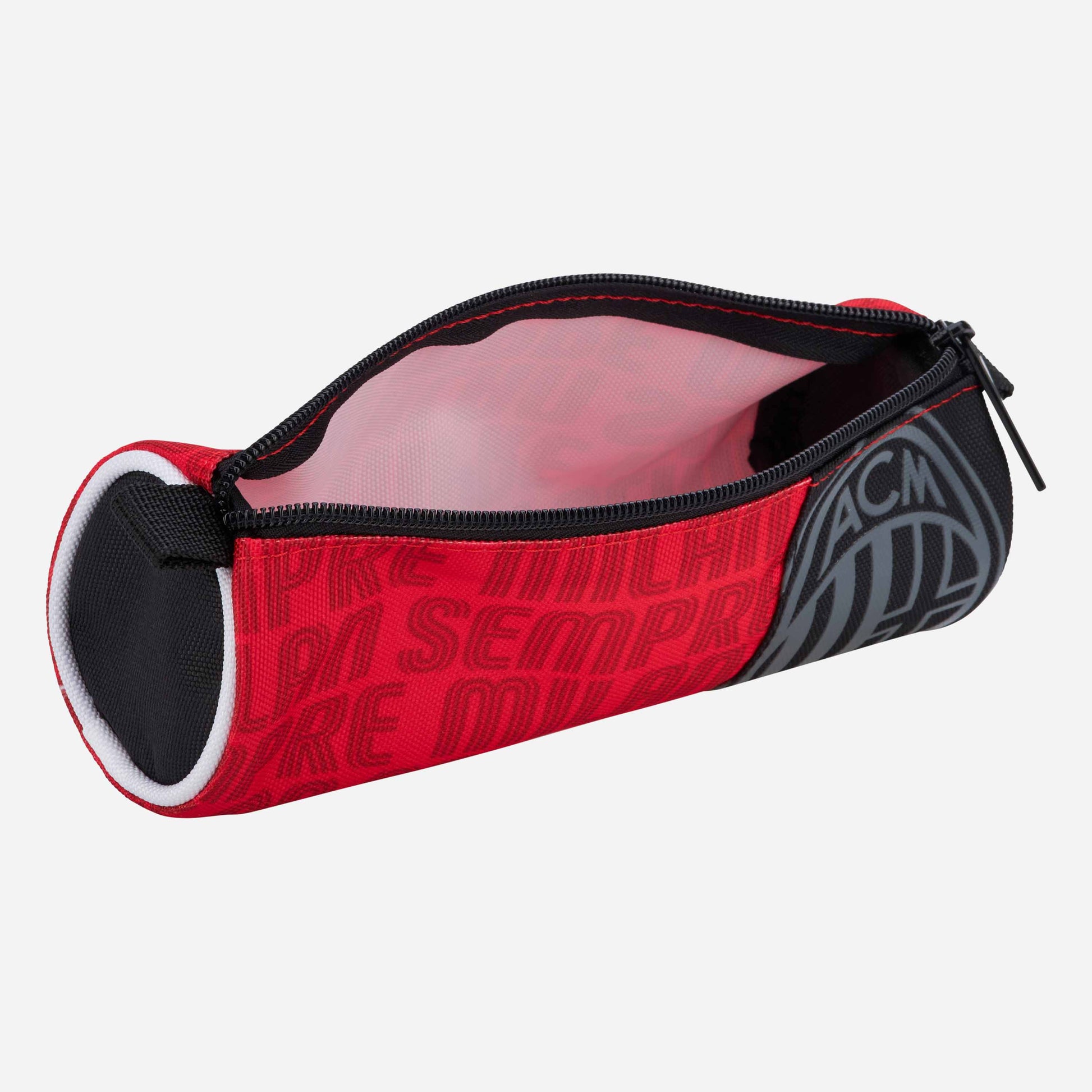 Astuccio AC Milan in tessuto, dalla forma cilindrica, con grafica "Sempre Milan" e logo.