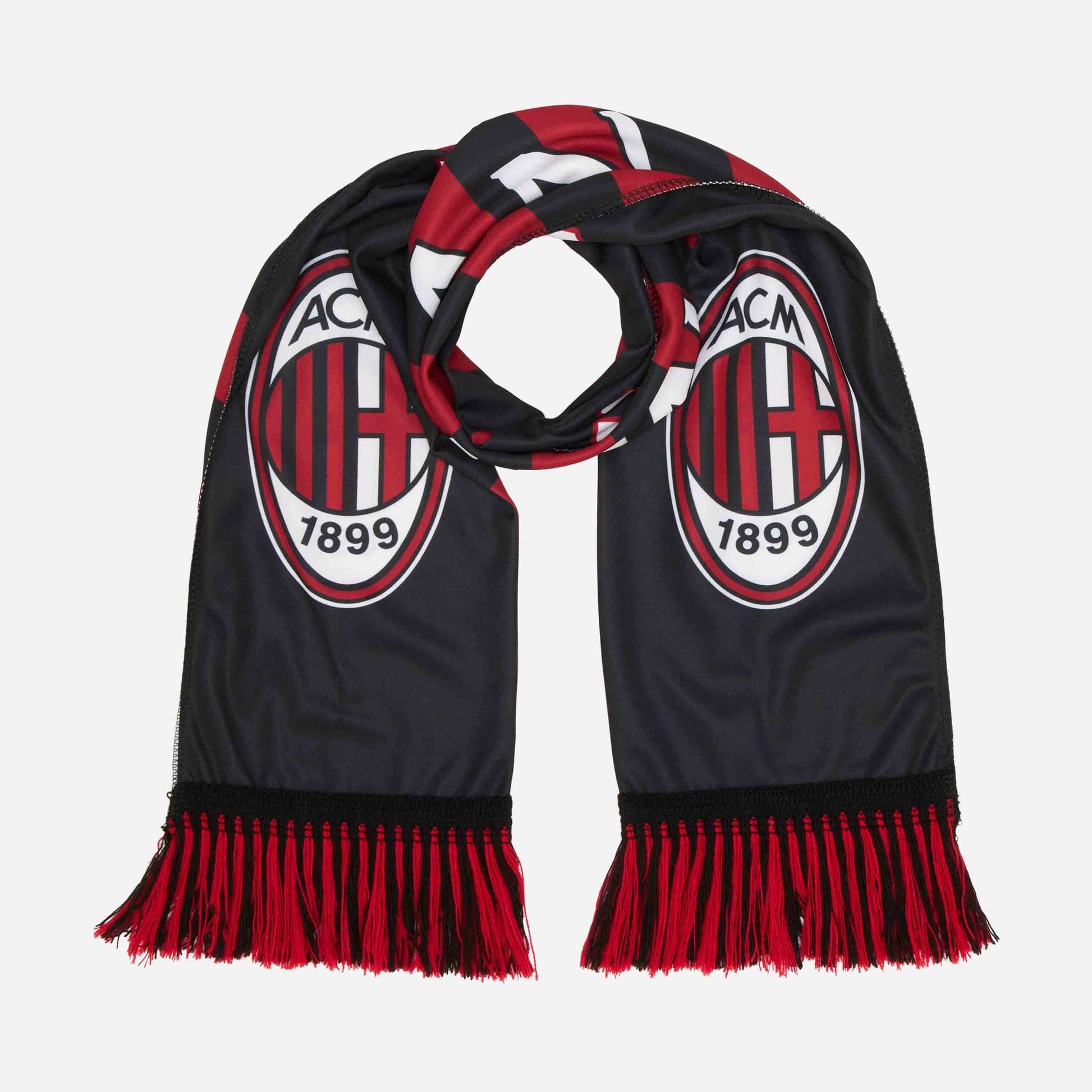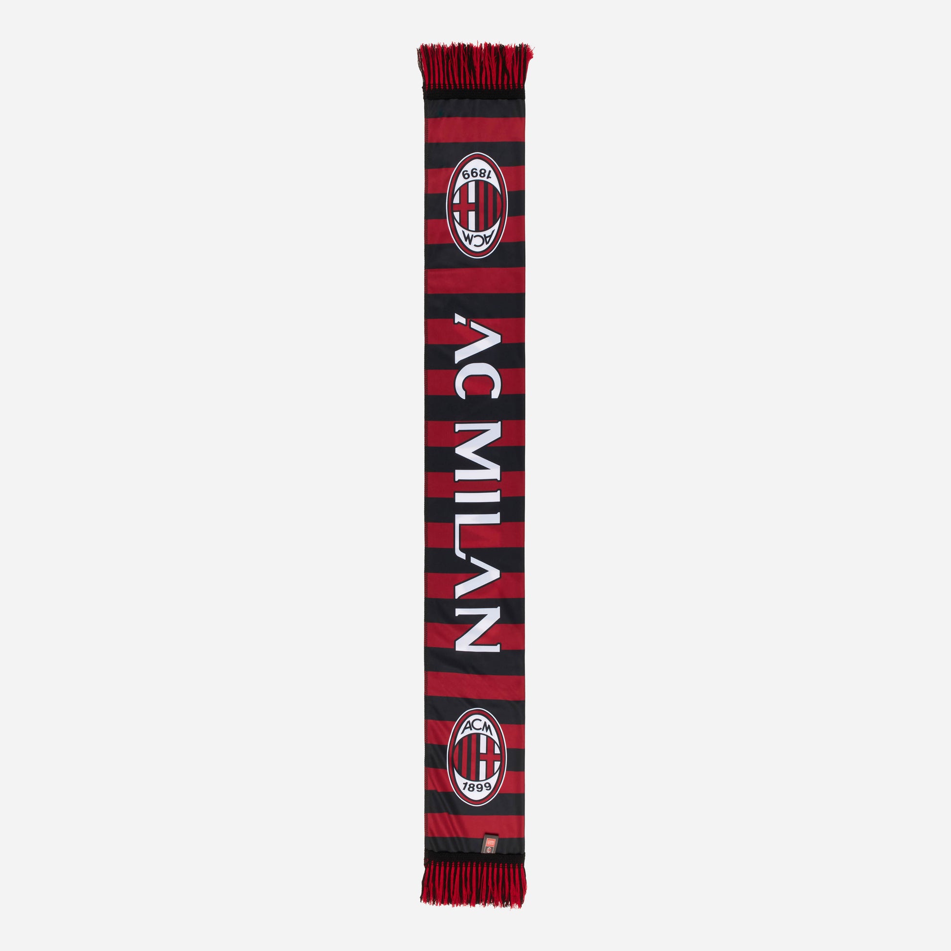 | Sciarpa AC Milan double face a strisce rossonere con scritte a contrasto e logo. DETTAGLI . Realizzata in tessuto leggero . Un lato a strisce rossonere con scritta AC Milan a contrasto e doppio logo ufficiale AC Milan . Un lato nero con scritta AC Milan a contrasto e doppio logo ufficiale AC Milan . Frangette rossonere in maglia sulle estremità MATERIALE E CURA . Materiale esterno: 100% poliestere . Seguire sempre le istruzioni per la cura del prodotto riportate sull'etichetta |
