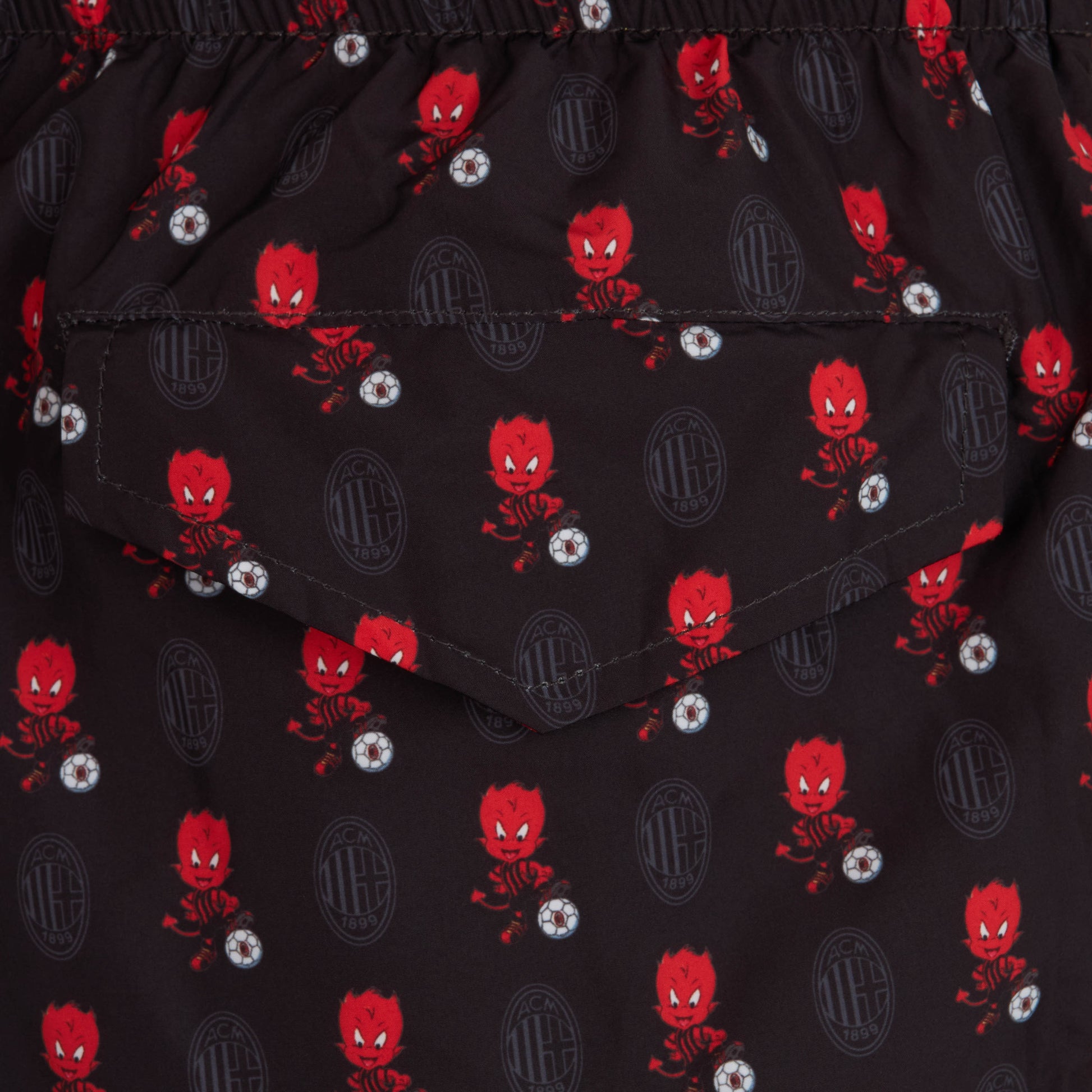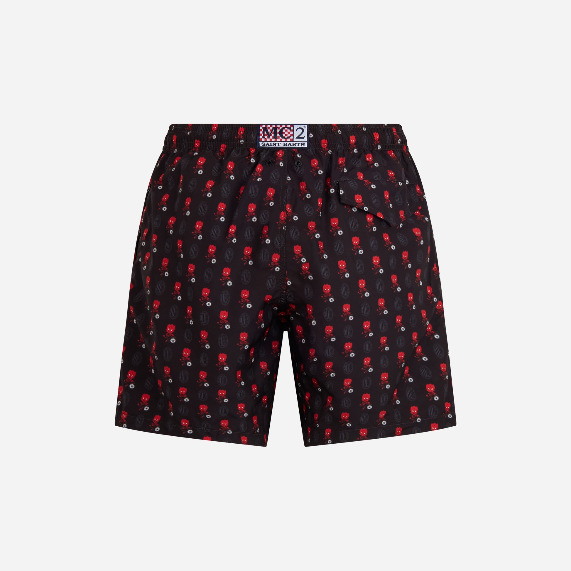 Costume AC Milan modello boxer con fantasia diavoletto allover, appartenente alla capsule collection AC Milan X MC2 Saint Barth.